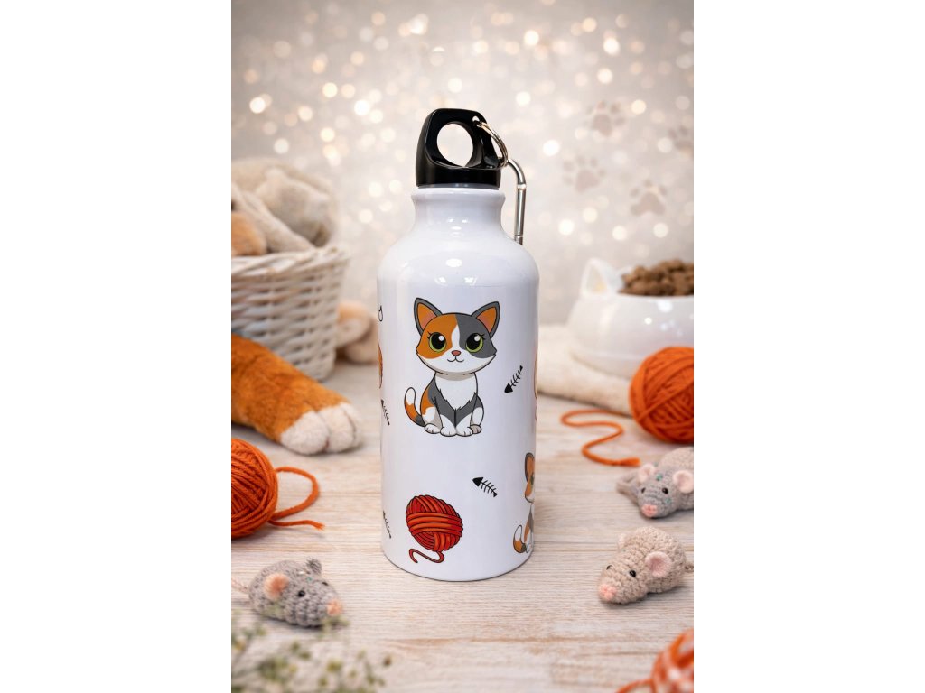 Hliníková láhev 400 ml s karabinou - Kočky