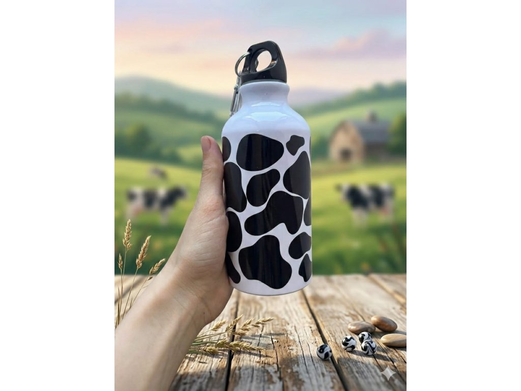 Hliníková láhev 400 ml s karabinou - Kráva
